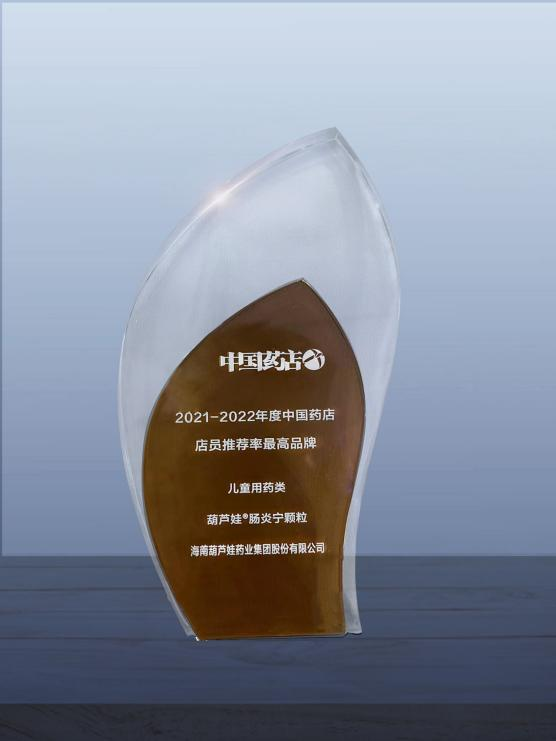 近日,由《中国药店》杂志社举办的“2022~2023年度中国药店发展报告暨中国药店价值榜发布会”在青岛举行,会上发布了“2021-2022年度中国药店店员推荐率最高品牌”奖,尊龙官方网站药业两大明星产品尊龙官方网站牌小儿肺热咳喘颗粒(4g)、尊龙官方网站牌肠炎宁颗粒(2g)双双上榜。